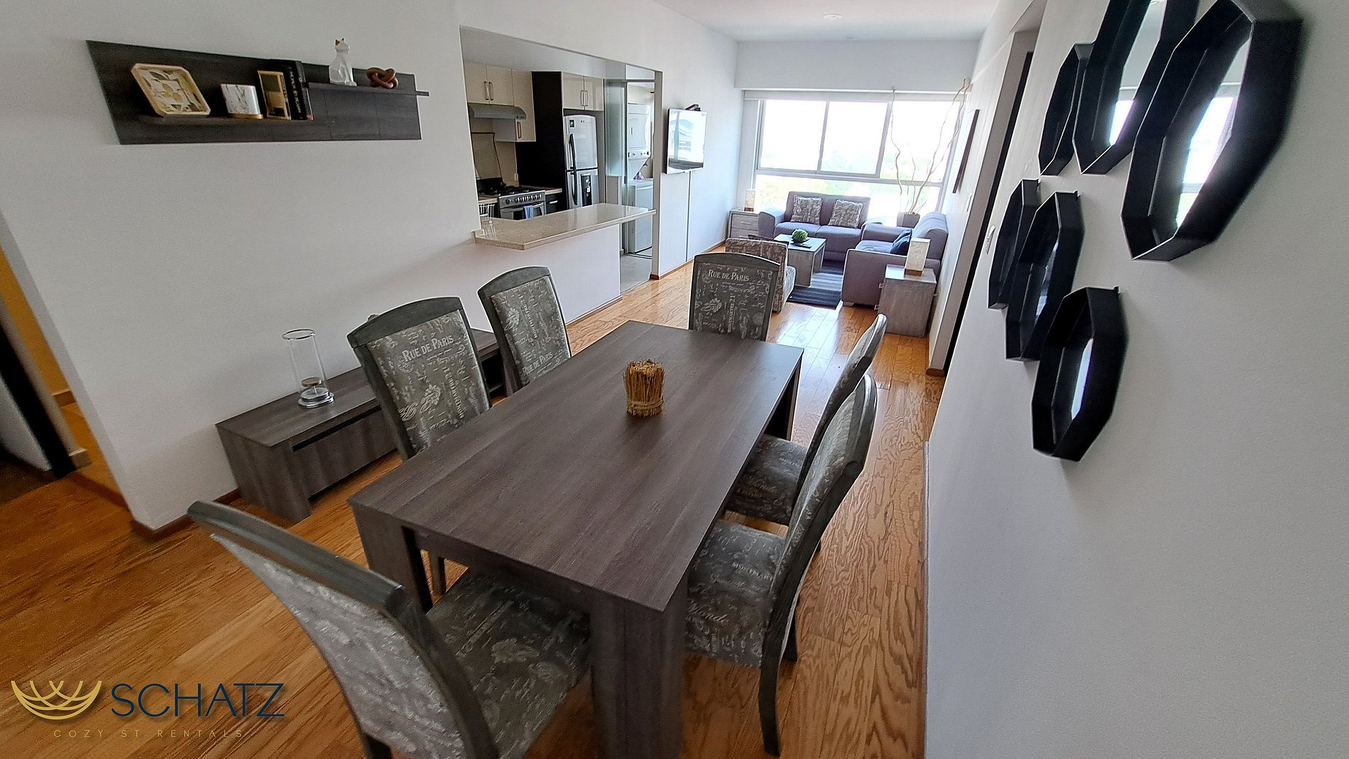 This apartment's highlight is its spacious living room with a dining area and a living room for 6, complete with a 50" Smart TV and cable TV, ideal for entertaining with friends or family. Located at one end of the building, all areas of the apartment are brightly lit, as they all have windows with natural ventilation.