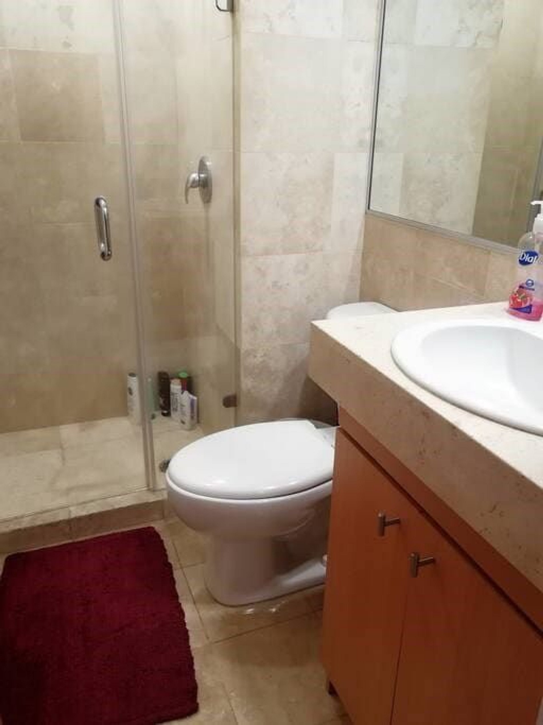 The apartment's greatest feature is its cozy living room with a 43" cable TV screen, ideal to close the day with friends or family after that work meeting or city tour. The apartment also has a master bedroom with a queen-size bed featuring a SmartTV, and a secondary bedroom with a double bed, both with roomy closets. Its American style kitchen is equipped with a washing-drying machine, a drinking water dispenser, refrigerator, microwave, coffee maker, toaster, blender as well as utensils, crockery, glasses, refractories, and pans to prepare any kind of dish. There is high-speed WiFi coverage throughout the apartment.
