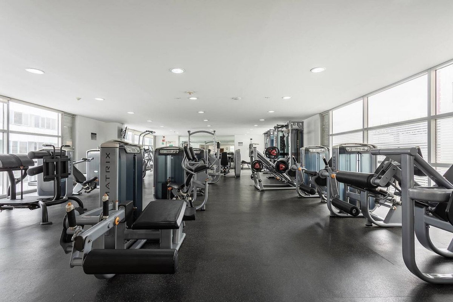 8th FLOOR: Gym with aerobic equipment, spinning room with 20 bicycles, and multipurpose classroom