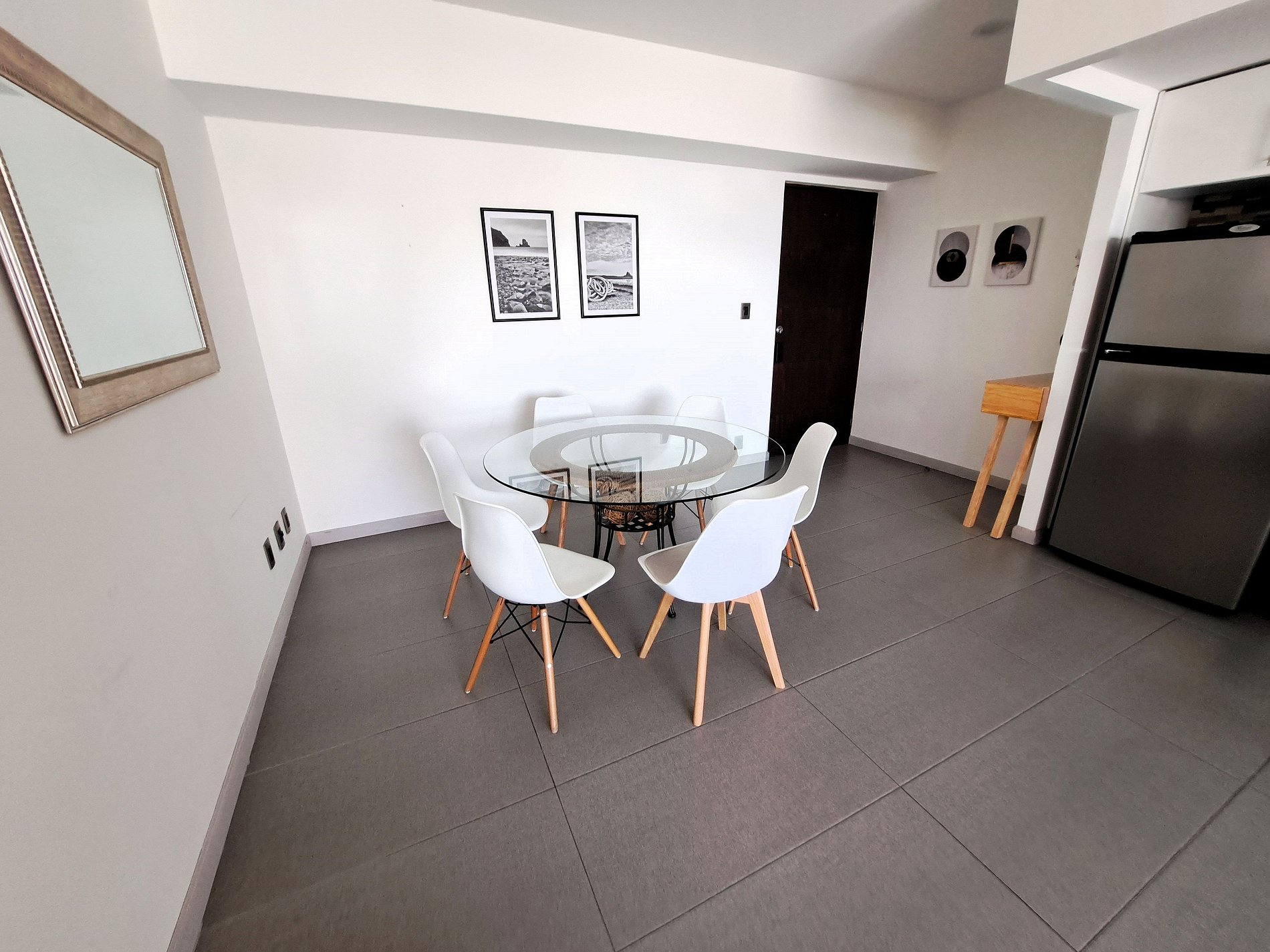 The apartment's greatest feature is its cozy living room with a 43" cable TV screen, ideal to close the day with friends or family after that work meeting or city tour. The apartment also has a master bedroom with a queen-size bed featuring a SmartTV, and a secondary bedroom with a double bed, both with roomy closets. Its American style kitchen is equipped with a washing-drying machine, a drinking water dispenser, refrigerator, microwave, coffee maker, toaster, blender as well as utensils, crockery, glasses, refractories, and pans to prepare any kind of dish. There is high-speed WiFi coverage throughout the apartment.