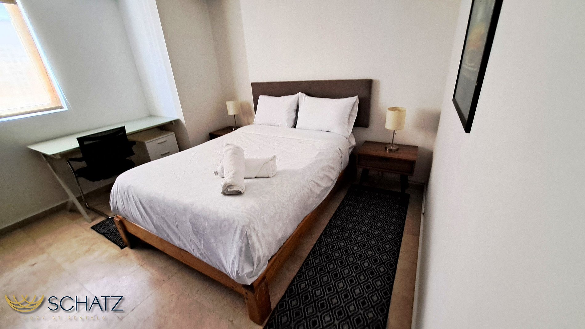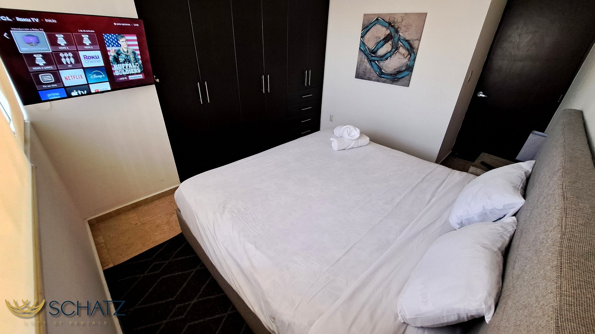 Su recámara principal tiene una cama tamaño queen, amplios closets y una SmartTV de 40”. La habitación secundaria tiene una cama matrimonial, un escritorio con sillón.