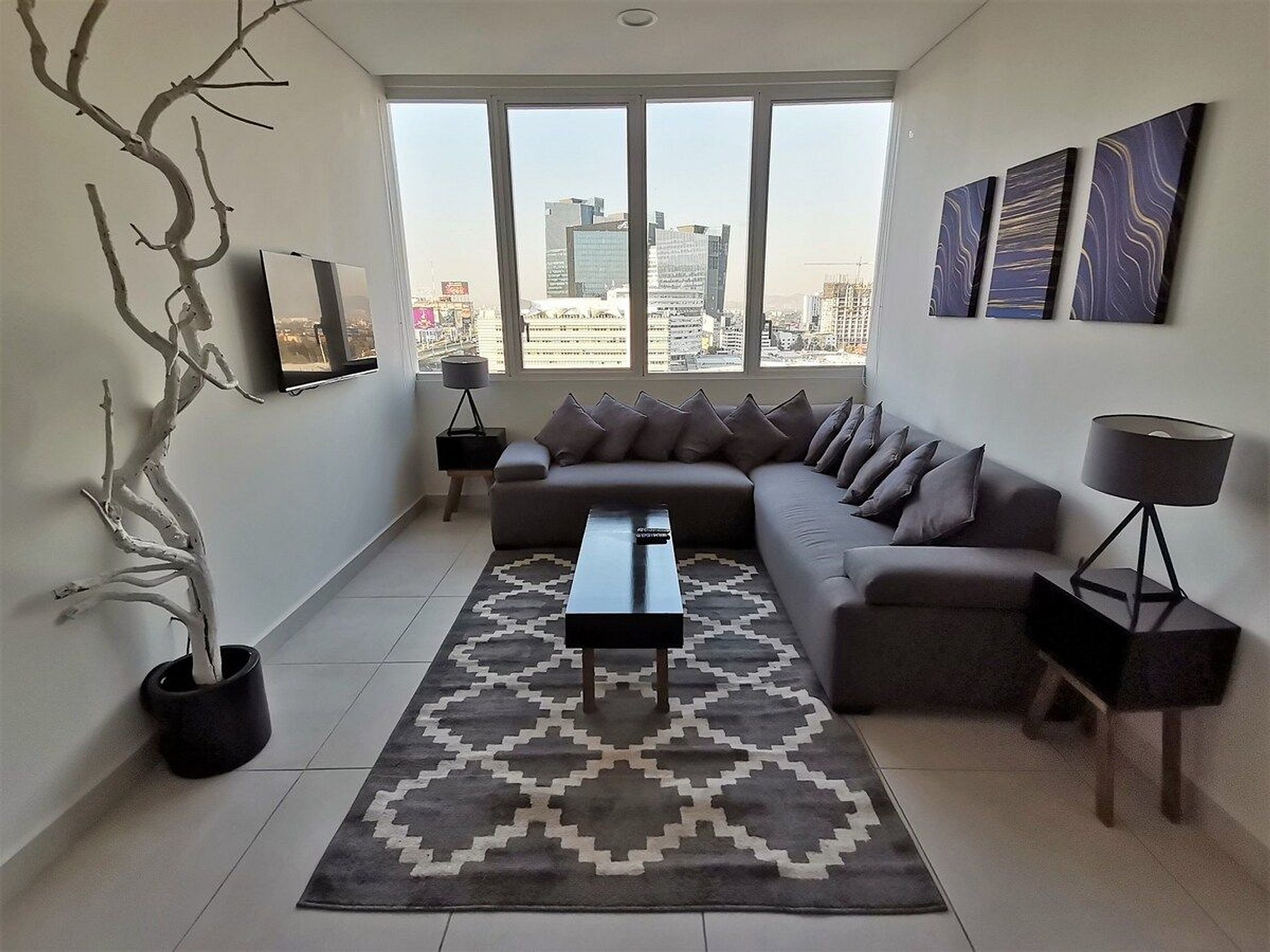 El máximo atributo de este departamento es su amplia estancia con comedor redondo para 6 personas, medio baño y sala para 8 con pantalla de 43” y TV de cable, ideal para convivir con amigos o la familia. Su recámara principal tiene una cama tamaño queen con una Smart TV de 32", walking closets y baño completo propio . La habitación secundaria tiene dos camas individuales las cuales se pueden juntar para hacer una tamaño king, escritorio, amplio closet y baño completo propio. Su cocina tiene una barra americana y está equipada con lavadora, refrigerador, microondas, cafetera, tostadora, licuadora, así como utensilios, vajillas, vasos, copas, refractarios y sartenes para preparar cualquier delicioso platillo. Hay cobertura de WiFi de banda ancha en todo el departamento, así como en las diversas áreas públicas.