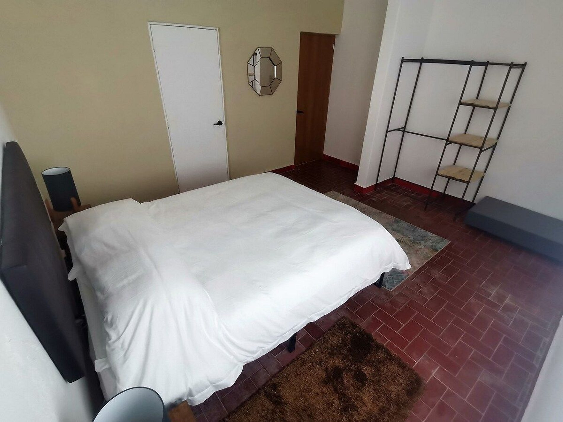 Este magnífico departamento cuenta con una recámara principal muy amplia con cama tamaño queen, su propio baño, aire acondicionado a través de un silencioso mini-split y su ventana al patio interior la iluminan con luz natural. La segunda recámara cuenta con 2 camas individuales las cuales se pueden juntar para hacer una cama tamaño king (con previa solicitud). Su balcón al exterior ofrecen una excelente ventilación natural complementado con un ventilador industrial silencioso. Comparte el segundo baño completo con el área común, cuya amplia sala cuenta con una smart-tv de 47" y su comedor tiene integrado una cocineta con doble parrilla de inducción, refrigerador, cafetera, tostadora, microondas y todos los utensilios necesarios para preparar cualquier platillo básico.