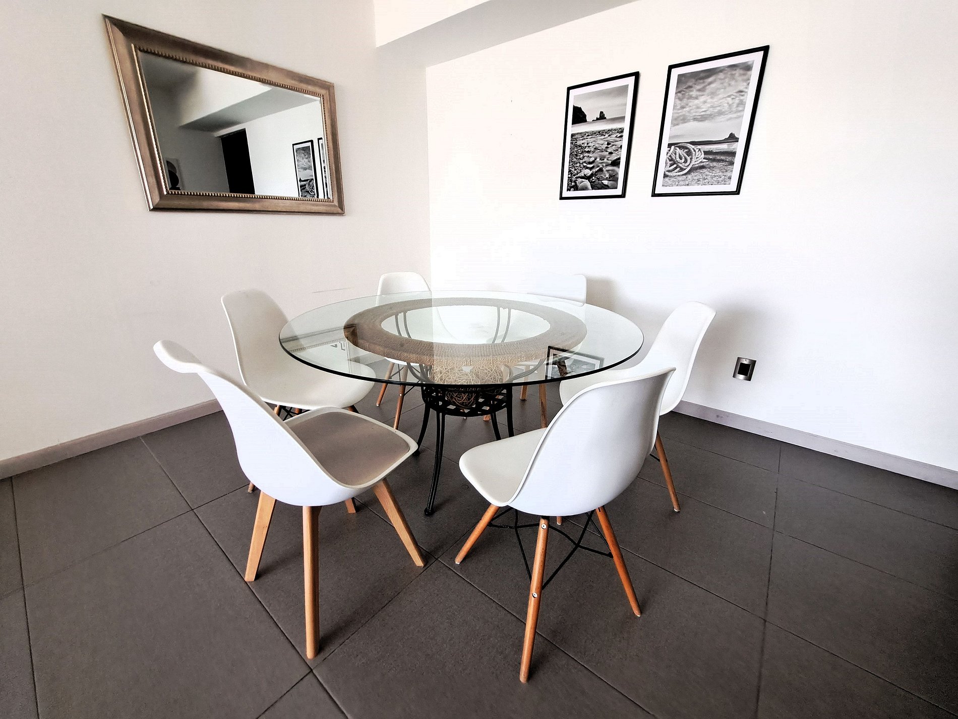 El máximo atributo de este departamento es su cálida área común con comedor y amplia sala con una pantalla de 43" y TV de paga, ideal para convivir con amigos o la familia después de ese día de trabajo o de tour por la ciudad. El departamento cuenta además con una recámara principal con cama tamaño queen y pantalla de 32" con Roku streaming. Adicionalmente su segunda habitación cuenta con una cama una tamaño matrimonial y un amplio closet. Su cocina es tipo americana y está equipada con lavadora-secadora, dispensador para garrafón de agua, refrigerador, microondas, cafetera, tostadora, licuadora así como utensilios, vajillas, vasos, copas, refractarios y sartenes para preparar cualquier platillo. Hay cobertura de WiFi de banda ancha en todo el departamento así como en las diversas áreas públicas.